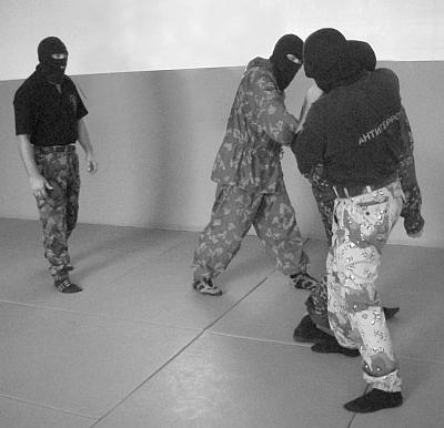 А вот методики обучения могут быть схожими. Особенно в тех разделах, в которых речь идет о развитии таких качеств, как сила, ловкость, гибкость, скорость, выносливость, воля к победе и т. д. И, в первую очередь, в работе по овладению базовыми навыками борьбы. Однако и здесь есть определенные особенности и нюансы. Например, наработка стереотипов нанесения шокирующих и отвлекающих внимание противника ударов и иные опасные действия (фото 1–3).