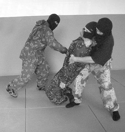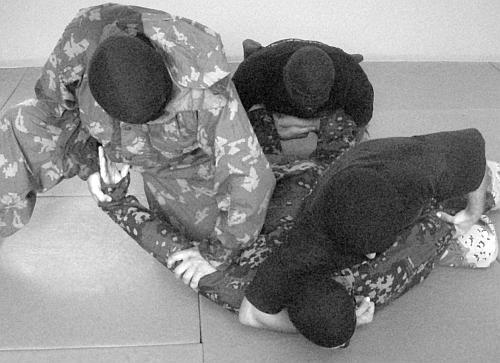 То есть в системе единоборств существует целый арсенал так называемых опасных бросков, которые являются самостоятельной категорией техники борьбы. К ним относится, например, бросок с использованием удушающего захвата и приема при отработке техники задержания (фото 1 —3 ).