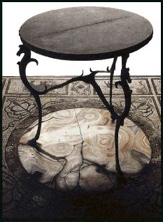 Треногий круглый столик покоится на полу с изысканной мраморной инкрустацией, окруженной мозаикой с фигурами животных. Столик был найден в таблинуме - большом помещении для приемов, размещавшемся между атриумом и перистильным садом, или двором. На таких столах обычно расставляли какие-нибудь лакомства для гостей.