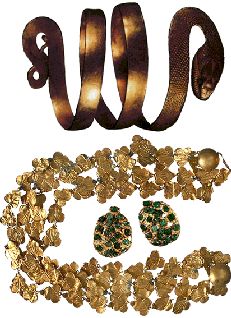 Эта свернувшаяся спиралью золотая змейка некогда обвивалась вокруг предплечья, богатой помпеянки, ожерелье украшало шею, а серьги с изумрудами - уши.