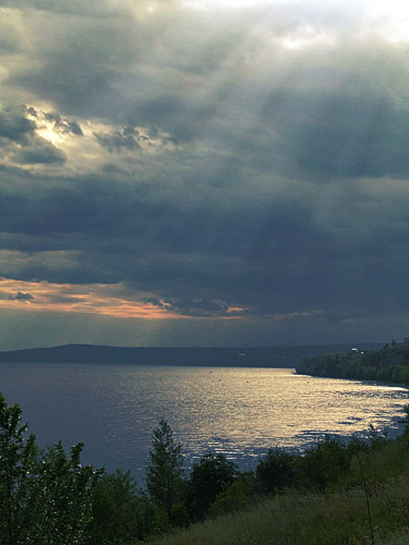 Кривая Lightness в Lab. Сразу предупредим, что это очень мощное и очень грубое средство работы с яркостью — вмиг забивает полутона, зато и контраст между деталями близлежащими создает так же быстро, если действовать аккуратно. Для примера возьмем снимок, который предоставил нам другой наш постоянный читатель Андрей, а то кошку совсем замучили. Сначала сделаем базовую цветокоррекцию, чтобы посторонний оттенок убрать и создадим нормальный контраст. Как вы поняли, наша задача — сделать красивые и заметные лучики на небе. Потому переводим фото в пространство Lab со сведением слоев и применяем кривые в качестве корректирующего слоя — только кликнем с нажатым Ctrl на лучики и небо рядом с ними. На кривой Lightness появятся две точки, верхнюю мы потянем вверх, а нижнюю вниз до получения желаемой разницы, после чего края кривой прижмем почти до исходного положения, чтобы вернуть в снимок все детали. Конвертируем обратно, давим шумы, показываем. Лучики появились. Если недостаточно, можно помахать по лучикам инструментом dodge (осветлитель), а по тучкам burn (затемнитель).