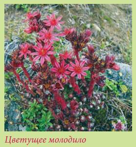 Размножается чаще всего вегетативно. В пазухах листьев образуются отпрыски – маленькие «кочанчики», соединенные с маточным растением прочными тоненькими стебельками. Стебелек растет до тех пор, пока дочерняя розетка не коснется поверхности почвы и не начнет укореняться. При высокой влажности даже на воздухе от детки отрастает масса воздушных корней. Через некоторое время возле материнского растения образуется целое гнездо розеток дочерних молодил. В зависимости от вида молодил количество деток колеблется от 3 до 10 штук. Один-два года укоренившиеся детки набирают силу, закладывают бутоны и, наконец, зацветают.