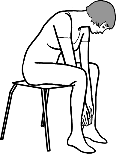 Положение 1. Поза кучера (напоминает положение кучера на облучке). Для занятий подходит любая обстановка: в транспорте, в местах длительного ожидания. Главное, чтобы была возможность сесть и принять соответствующее положение – ноги полусогнуты и раздвинуты в стороны, а руки пропущены между ними (рис. 13). Возникающая дремота действительно дает возможность отдохнуть, как во время обыкновенного сна.
