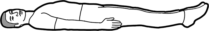 Следует лечь на спину или сесть в кресло (рис. 14). Глаза закрыты, руки вдоль тела. Мысленно расслабляем части тела, начиная с пальцев ног и заканчивая мышцами головы: «Расслабляются пальцы стоп, сами стопы. Расслабляются голеностопные суставы, голени, колени, бедра…» Медленно приближаемся к голове: «Расслабляются мышцы головы, лица, волосы».