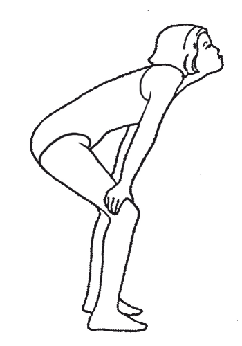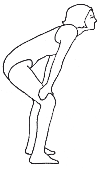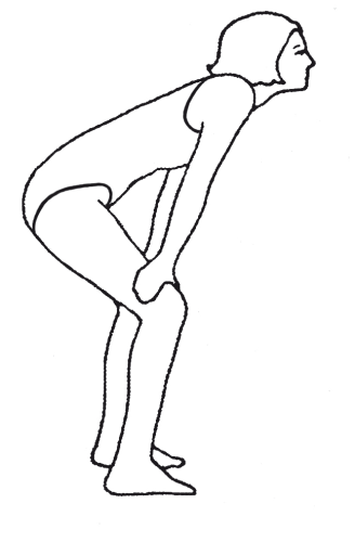 Исходное положение: встать прямо, расставить ноги на ширине плеч, ладони положить чуть выше колен, копчик отвести назад (рис. 17 , а ).