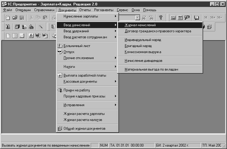 Документы формируют регистры автоматически, если, конечно, оператор подтвердит необходимость формирования регистров. Не формируют регистров только кадровые документы. Например, перевод сотрудника в другое подразделение или изменение должности может и не повлиять на расчет его заработной платы. Кроме первичных документов, существуют так называемые регламентные документы, которые формируются раз в месяц, а именно: начисление заработной платы.