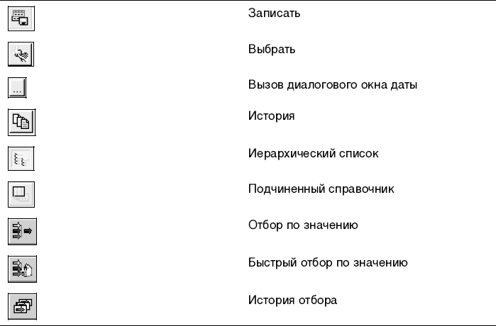 Кроме развернутого описания режимов и методов, в программе предусмотрены небольшие подсказки для кнопок и полей справочников и документов. Для того чтобы прочитать подсказку, надо навести курсор мыши на нужный элемент и подождать 1–2 секунды. Такие подсказки исчезают довольно быстро, поэтому при необходимости можно повторить. При наведении курсора мыши на кнопку панели инструментов окна внизу окна программы также появляется подсказка.