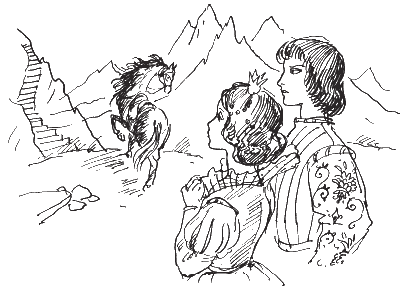 — Добрая медная змейка исполнит мою заветную мечту, — с мольбой проговорила Эльфиоль. — Я не смею сказать тебе, о чём я мечтаю, но, поверь, никого на свете не будет счастливей меня! А чёрный конь покажет нам самый короткий путь.