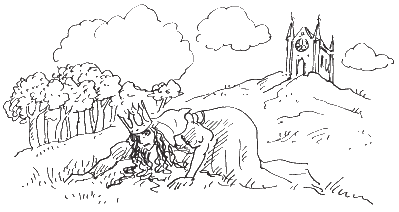 Морганда уже хотела спуститься с пригорка, как вдруг откуда-то издалека донёсся звучный удар церковного колокола. Глубокие чистые звуки поплыли над лесом Грюневельт. Казалось, поёт само небо. Это звонили воскресные колокола в далёкой церкви на холме.