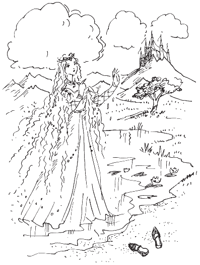 Морганда выхватила из-за пояса тонкий, остро отточенный кинжал и шагнула к королю. Но тут, к её досаде, перед ней оказался весёлый хоровод гномов, и она замешкалась.