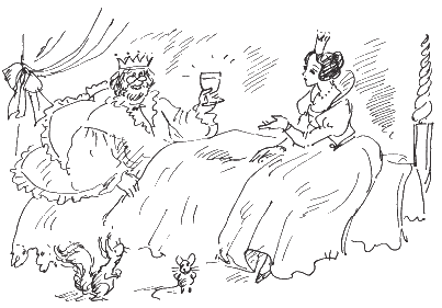— Прыг-прыг! Скок-скок! — не выдержав, засмеялся маленький поварёнок и тут же, испугавшись, спрятался за спину старого повара, закрыв рот ладошками. Но уже смеялись другие поварята и сам повар. Хихикали служанки и толкали друг друга локтями. Задыхаясь от смеха, мышонок Обжоркин упал на спину, дрыгая лапками.