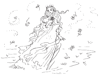 — Кто ты, красавица в золотой короне? — спросила девушка. Она изумлённо и боязливо огляделась по сторонам. — Где мы? Ледяной дворец! Какой холодный ветер… Как я попала сюда? Скажи, что со мной? Я не знаю, кто я, откуда?