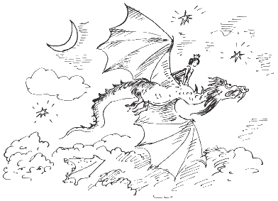 — Ах! — вскрикнула Белоснежка. Она почувствовала, что её схватили чьи-то сильные руки. Мгновение, и она очутилась на чешуйчатой спине дракона.