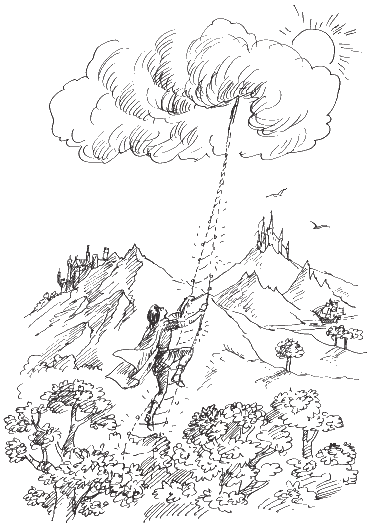 — Куколка моя, красавица, не беспокойся ни о чём. Я должен ненадолго удалиться в свой замок. Я вызову к себе Северный Ветер. Не пойму, почему он не уносит мою тучу далеко отсюда и мы всё время крутимся над Серебряным Озером. Погуляй пока по моим садам и паркам и думай о нашей свадьбе. Мы справим её, пролетая над безбрежным океаном. Грохот волн заменит нам звон колоколов, а русалки, плавая на льдинах, будут петь в нашу честь.