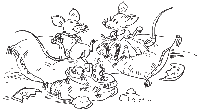 В это время, плавно покачиваясь в воздухе, появилось белое, как лебединое крыло, покрывало. За его уголок цеплялся потный от страха мышонок Обжоркин.