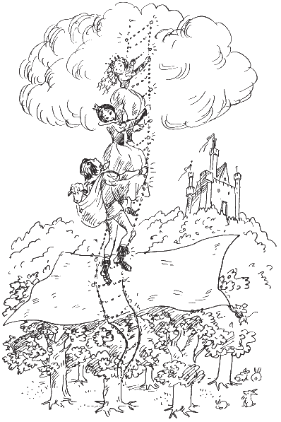 — Прыгайте сюда! — пискнул он дрожащим голоском. — Это покрывало феи Серебряного Озера.