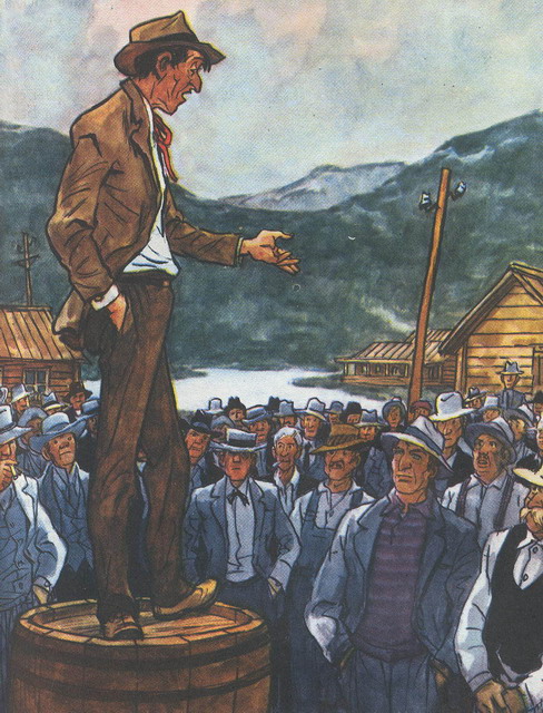 — Весь город, — отвечает он, — собрался у Сперри, на складах шерсти, и слушает речь вашего друга-приятеля. Что и говорить, он умеет извлекать из себя всякие звуки касательно разных материй.