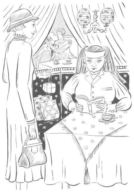 Мисс Климпсон проследовала в третий зал. За одним столиком разместилась шумная компания с эрдельтерьером, а в самом дальнем укромном уголке «Восточного кафе» сидела медсестра и читала книгу.