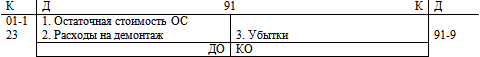 Д 91 – К 23 (списаны расходы по демонтажу)