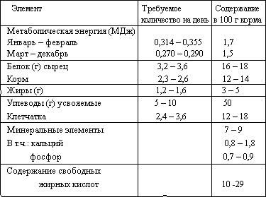 Потребность в различных составляющих кормов