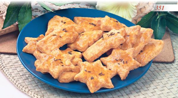 Раскатайте охлажденное тесто в пласт и вырежьте из него печенья нужной формы: полоски, кружочки, звездочки.