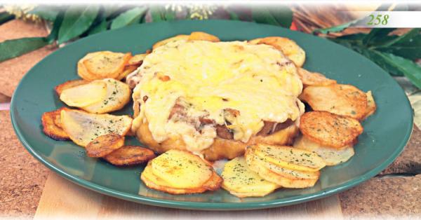 Картофель нарежьте кружочками и обжарьте на растительном масле до румяной корочки.