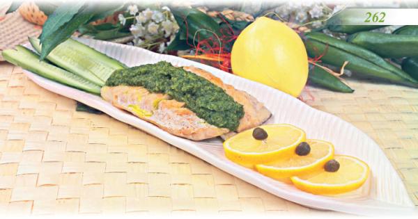 Приготовьте соус.. Пучок зелени укропа и петрушки, кедровые орехи, сок лимона, соль и перец перемешайте в блендере до однородной массы, постепенно добавляя растительное масло.