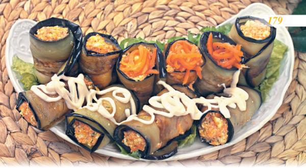 Нарежьте баклажаны вдоль пластинами и обжарьте на растительном масле до золотистого цвета.