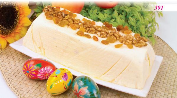 Добавьте дважды протертый через сито творог, изюм, миндаль, измельченные апельсиновые цукаты или лимонную цедру.