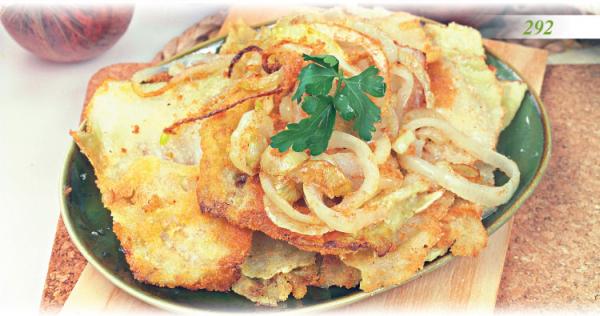 Каждый лист обмакните во взбитое яйцо, обваляйте в сухарях и обжарьте на разогретом растительном масле до золотистого цвета.