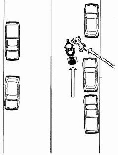 Не сосредотачивайте все внимание на дорожном полотне. Смотрите и на тех, кто собрался поворачивать налево. Для вас они опаснее всего. Подъезжая к перекрестку, подготовьтесь к торможению. Пальцы, положенные заранее на рычаг тормоза, сокращают тормозной путь на 50 футов.