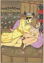 Наставляющий сказал: нет истины, заключенной в слове, есть только направление и путь. Пусть мужчина обнимает тебя и уложит на ложе любви. Он снимет с тебя одежды и повязку на талии – не противься, закрой глаза и прикрой груди рукой – пусть он сам отведет твои руки, чтобы поцеловать груди. Сомкни колени, напряги ягодицы – пусть мужчина раздвинет их своей крепкой рукой. В истоме раскрой губы – пусть он целует их и проникает в твой рот языком. А когда коснется пальцами йони – пусть он поглаживает ее, пока не выступит влага. Пусть твое тело расслабится и ты почувствуешь себя во власти мужчины и тебе захочется, чтобы его сильный лингам вошел в твою йони, готовую принять его. Открой глаза – пусть твой стыд улетучится, начни покусывать его губы, впусти его язык в свой рот, а его лингам в свою йони. И когда лингам, после разных движений, нажимов и ударов извергнет мужское семя, твоя йони пустит любовный сок. Тогда из твоих уст вырвется стон любви, крик сладострастия, и, не удержавшись от возгласов, ты уже не будешь стыдиться и сдерживать их. Это и будет вершина любви.