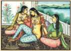 Индийские женщины; эротическая сцена. Индийские миниатюры. XVIII–XIX вв.