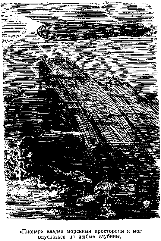 «Пионер» был поистине властелином морских просторов, он мог опускаться на любые глубины, не боясь быть раздавленным километровыми толщами воды, мог пересекать океаны вдоль и поперек, не заходя в порты и базы, не ощущая надобности в них. Его единственной базой был безграничный Мировой океан со всеми его неисчерпаемыми запасами энергии и пищи.