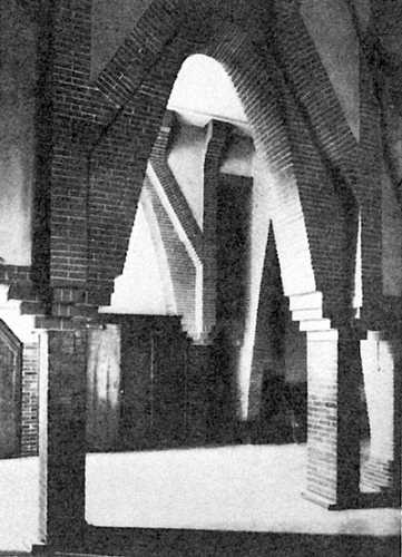 Необходимо заметить, что во время осмотра коридора Коллегио Терезиано изнутри создается впечатление, будто световой поток заливает все внутреннее помещение. Действительно, автор стремился к тому, чтобы создать такое конструктивное решение, при котором свет будет струиться сверху вниз, пронизывая здание насквозь, начиная с третьего этажа. Здание Терезианского колледжа интересно еще и тем, что в его архитектуре впервые появляются черты, присущие творчеству зрелого мастера. Среди них необходимо назвать прежде всего кирпичную колонну, установленную в самом, казалось бы, неожиданном месте – прачечной, находящейся на первом этаже.
