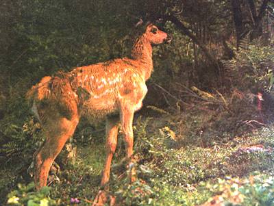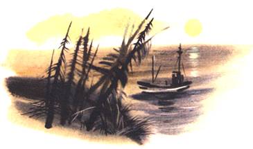Бухта появилась неожиданно, с левого борта: полукруглая, словно её вырезали огромными ножницами. Вдалеке, над лесом, поднималась гора, похожая на задумчивого великана. На песке стояли неподвижно олени с зелёными рогами. Сказочная страна!