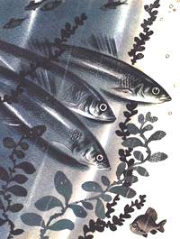 омуля, бычков-жёлтокрылок с плавниками, похожими на золотистые перепончатые веера, разных малюсеньких рачков, смешно шевелящих усами.