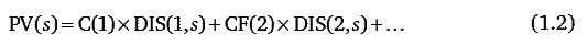 Значение s, при котором приведенная стоимость PV(s) становится равной рыночной цене, определяется по формуле: