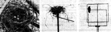 Мы опустили гнездо взглянуть. Зеленые в черных крапинкахяйца лежали уже холодными и годились теперь только на сувениры. Гнездо было построено тем же «индустриальным» методом, что и первое, — во все стороны торчала проволока.