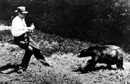 Рано утром мы покидали старейший заповедник земли. У въезда стояла длинная очередь автомобилей. Будочник, взимавший за въезд два доллара, позевывал. Все непременно хотели сняться и терпеливо ждали, когда можно будет картинно стать рядом с массивной вывеской «Йеллоустонский национальный парк». Спокойная чинная очередь. Одни, снимаясь, дурачились. Другие были серьезны — поездка в Йеллоустон бывает раз в жизни.