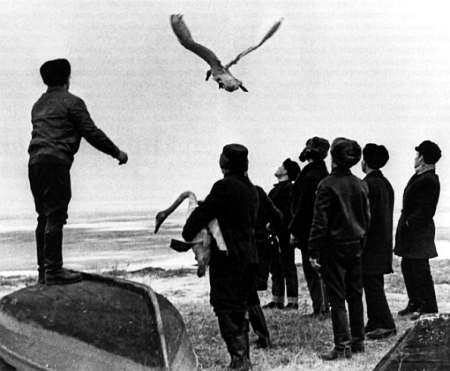 Жестокий мороз ударил 12 января. Прибрежная часть морей и в первую очередь мелководья замерзли. Нырковые утки, способные добывать корм с глубины, оттянулись от берега и какое-то время продолжали пастись. Но лебеди, гуси, благородные утки и фламинго сразу остались без корма — на глубокой воде добыть они ничего не могли. Наблюдатели-орнитологи говорят, что «птица на Каспии в этот момент заметалась». Подобно тому, как самолеты, лишившись места посадки, идут на запасные аэродромы, так и птицы огромными стаями снялись с привычных зимовок в поисках «запасных пастбищ» на юге и юго-западе Каспия. Но тщетно. Богатый кормовыми угодьями Кызылагачский залив тоже покрылся льдом, и местные птицы, смешавшись с прилетными стаями, полетели к Ирану. Но холод и там достигал тридцати градусов. Растратив силы, страдая от холода и бескормицы, птицы стали скопляться в привычных для них местах, у кромки растущих льдов.