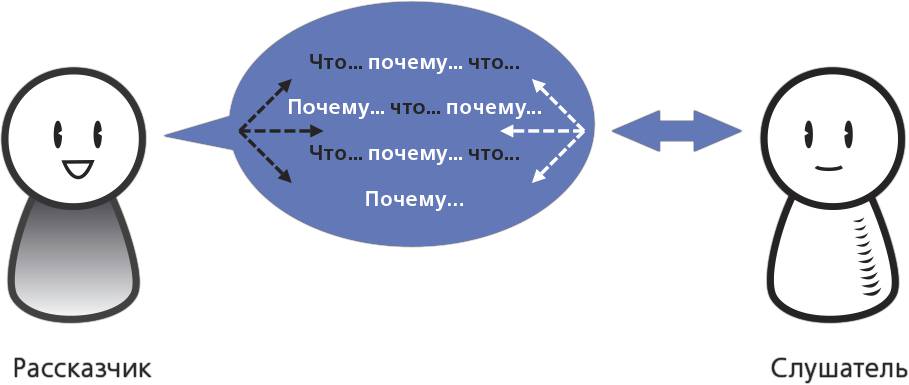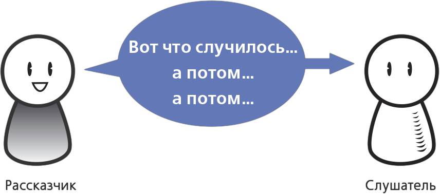 РИС. 2.2. Треугольник истории показывает взаимосвязь между рассказчиком и слушателями: последние не только воспринимают историю, но и реагируют на нее