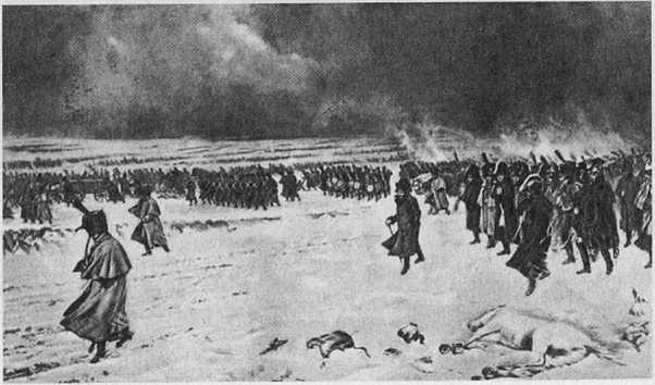 Утром 17 ноября наступила развязка. Атакуемый Витгенштейном и Чичаговым и не исключавший скорого появления Кутузова, Наполеон понял, что всю артиллерию и обозы ему не спасти. Он приказал Виктору переходить на правый берег. В 8 часов 30 минут утра, когда на левом берегу оставалась еще масса «некомбаттантов», больше чем в 10 тыс. человек, генерал Эбле по приказу Наполеона и под вопли оставшихся поджег оба моста1172. Еще через полчаса на всю эту массу беспорядочно толпившихся в пароксизме отчаяния людей налетели казаки и частично изрубили, а большей частью взяли их в плен. Тем временем Наполеон, отбиваясь от Чичагова, уходил с гвардией, остатками кавалерии Мюрата, корпусов Даву, Нея, Богарне, Удино, Виктора, Жюно, Понятовского через Зембин на запад.