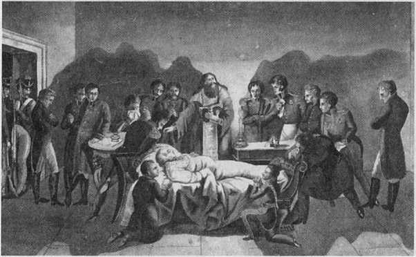 Кончина М.И. Кутузова в Бунцлау 16 (28) апреля 1813 года. Акварель И.Л. Ефимовича, адъютанта Кутузова