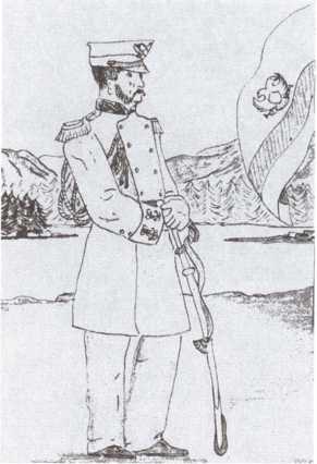 Собирательный образ представителя России во время передачи Русской Америки. Возможно, это капитан 1-го ранга А. Пещуров. Аляскинская национальная библиотека