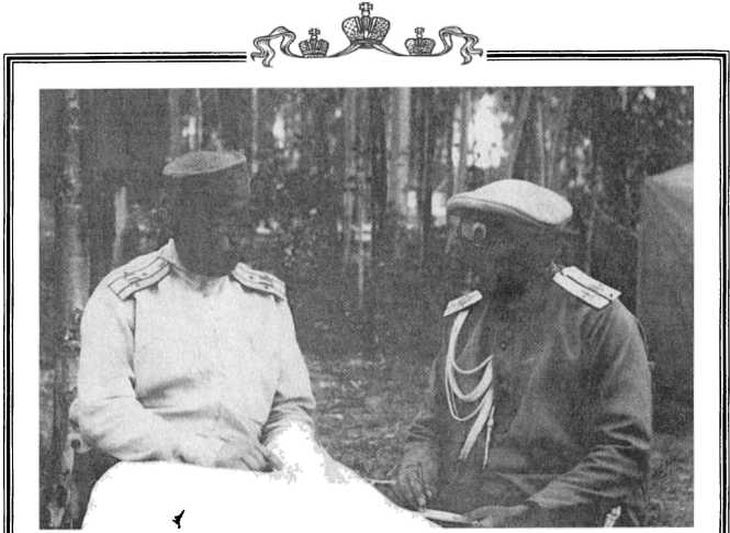 Канаки Собственного Е. И. В. Конвоя п почетном карауле во время Великой воины. Офицер Конвоя отдает рапорт Государю Императору, справа командир Конвоя генерал-майор граф Граббе