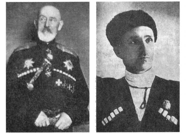 Командующий 1-м Лабинским генерала Засса полком ККВ войсковой старшина II.С.Абашкин и полковой адъютант хорунжий КП.Фалеев. 1916г. (лица офицеров на снимке заретушированы в советское время родственниками)
