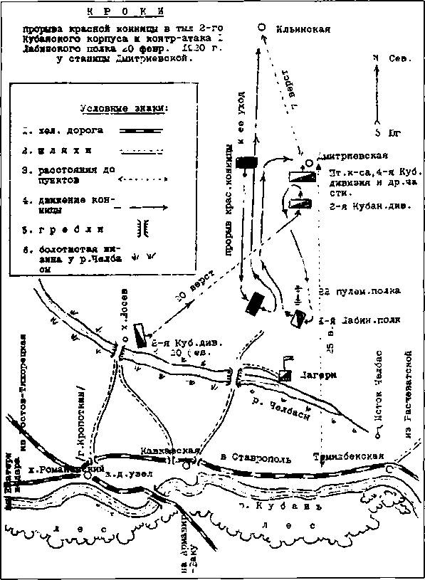 Кроки прорыва красной конницы в гыл 2-го Кубанского конного корпуса и контратака 1-го Лабинского полка у ст. Дмитриевской 20 февраля 1920 г.