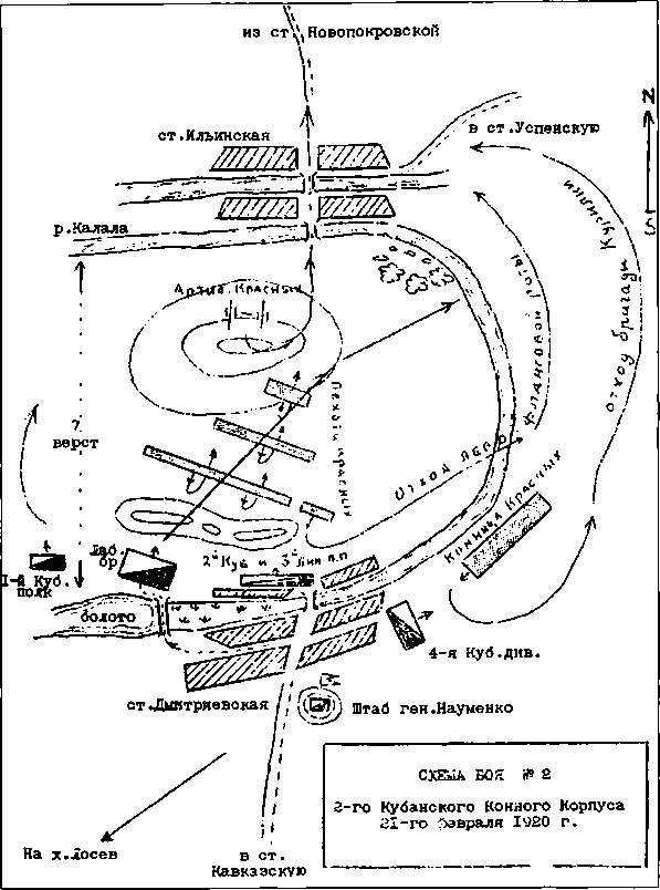 Схема боя 2-го Кубанскою копною корпуса 21 февраля 1920 г.