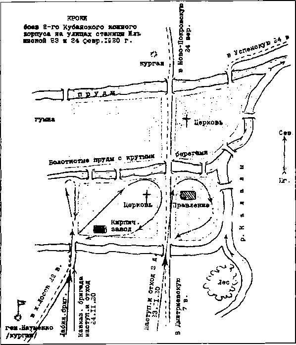 Кроки боев 2-го Кубанского конного корпуса на улицах ст. Ильинской 23 и 24 февраля 1920 г.